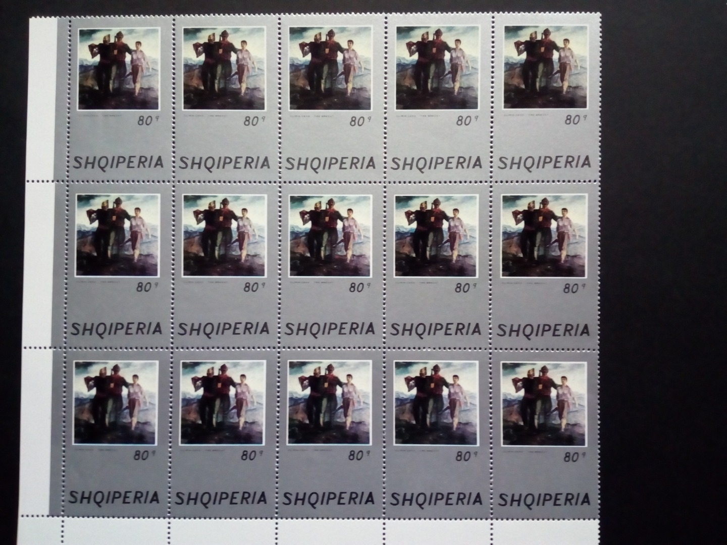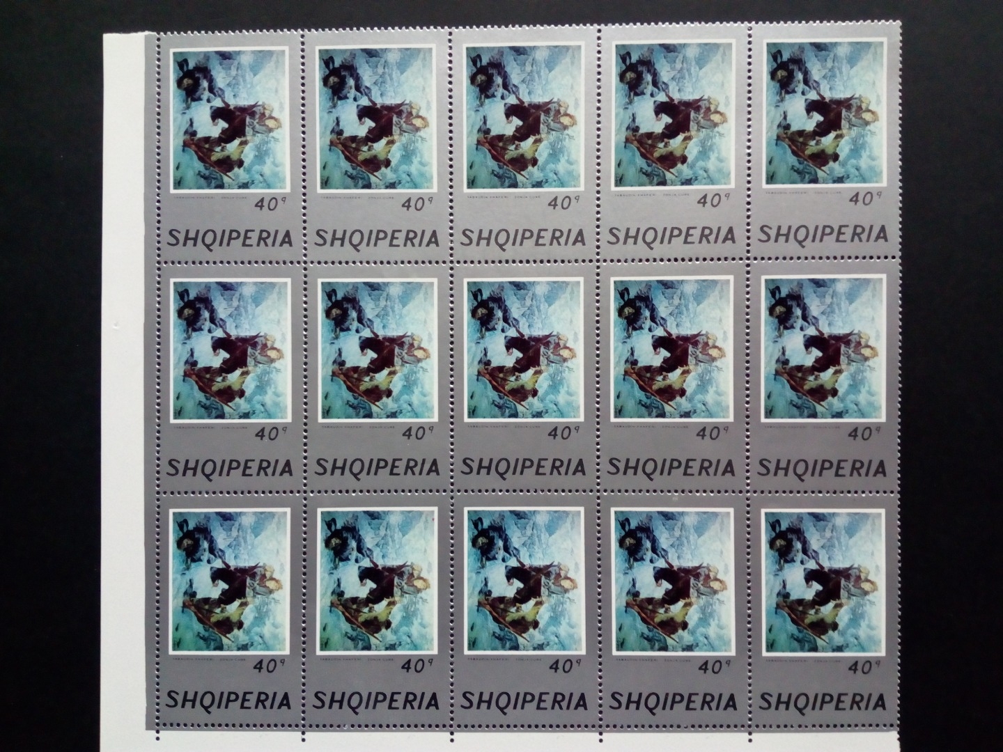 Albanien Bogenteil mit 15 Sätzen, einmal gefaltet.