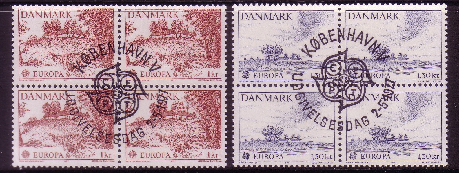 DÄNEMARK MI-NR. 639-640 o 4er BLOCK EUROPA 1977 - LANDSCHAFTEN