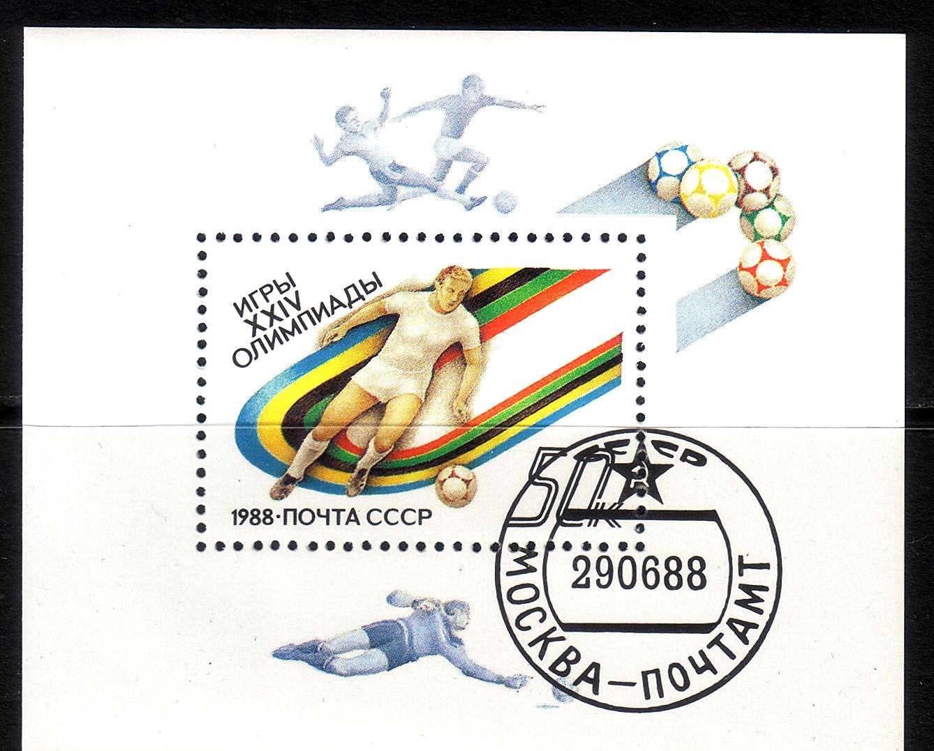 SOWJETUNION BLOCK 202 GESTEMPELT(USED) OLYMPISCHE SOMMERSPIELE SEOUL 1988 FUSSBALL