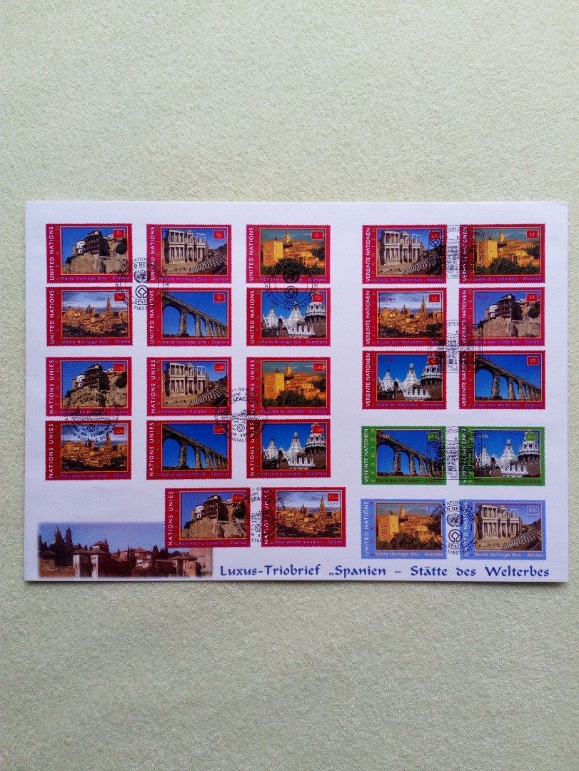 UNO Triobrief mit den jeweiligen Ausgaben von UNO- Wien, Genf, New York
